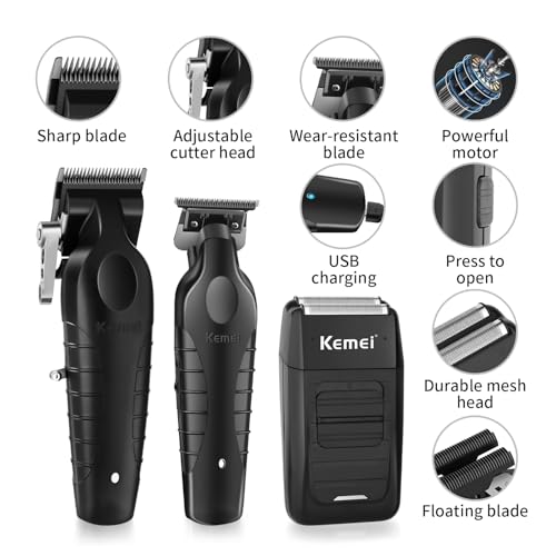 Click for More Images Hair Clipper - Hair Trimmer - Foil Shaver Set: From Kemei professionally designed hair clipper, smooth, sharp and precise performance, equipped with the most precise blade, self-sharpening, maintaining sharpness longer....