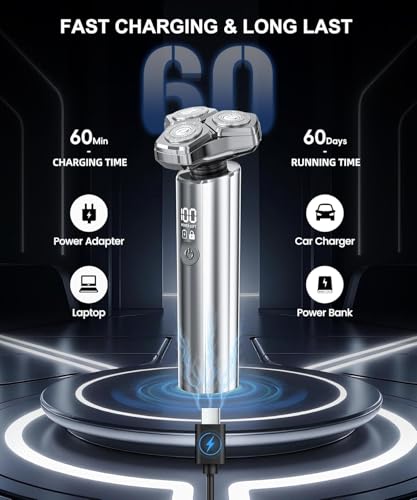 Click for More Images Cutting-Edge 4D Flex Rotary Blades: Our cutting-edge 4D Flexing Rotary Blades adjust to the curves of your face, ensuring a close and irritation-free shave, especially for sensitive skin.Versatile Wet/Dry Functionality:...
